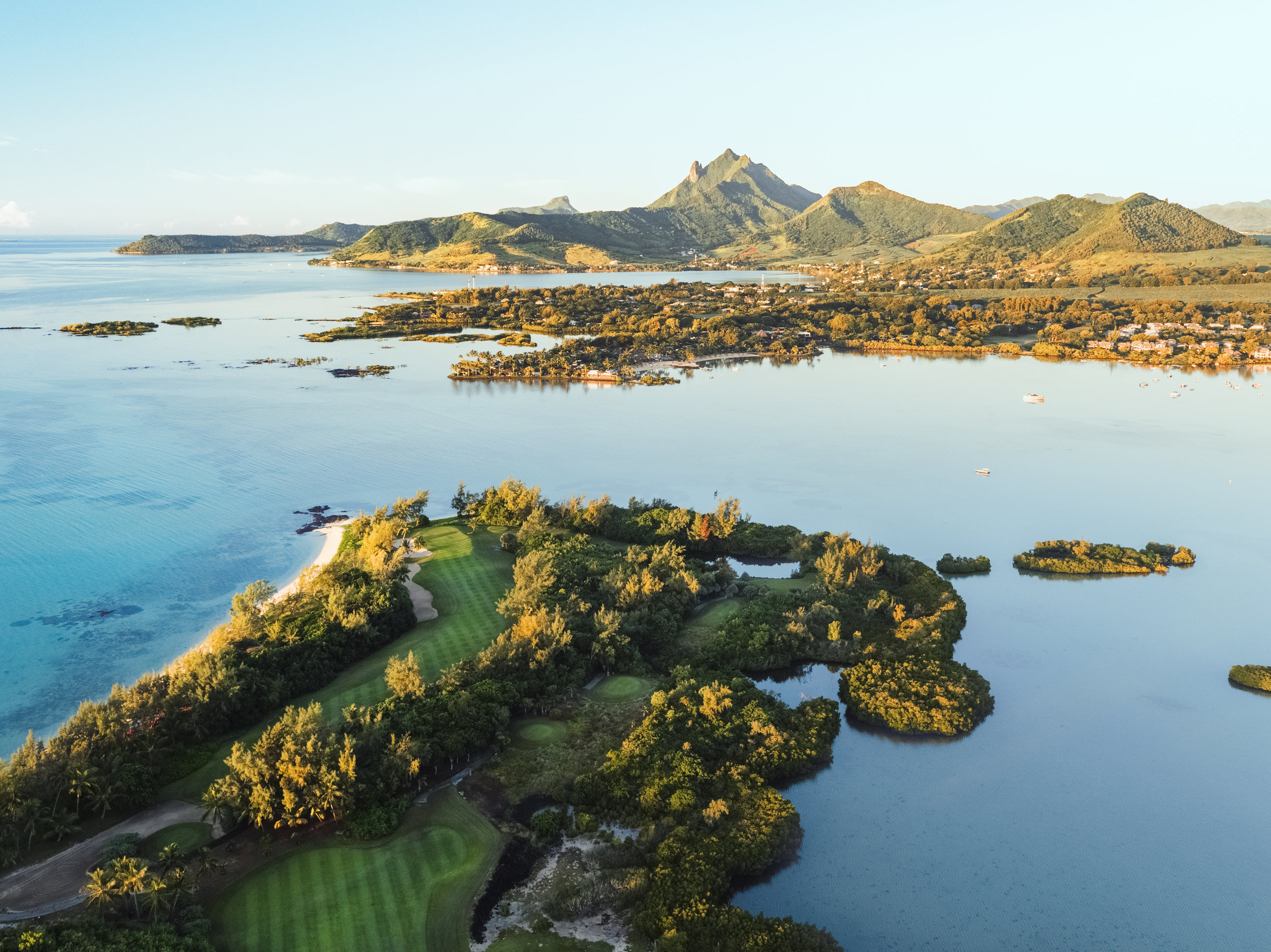 Located on Ile aux Cerfs island off the east coast of Mauritius, this tropical course is only accessible by boat or helicopter.