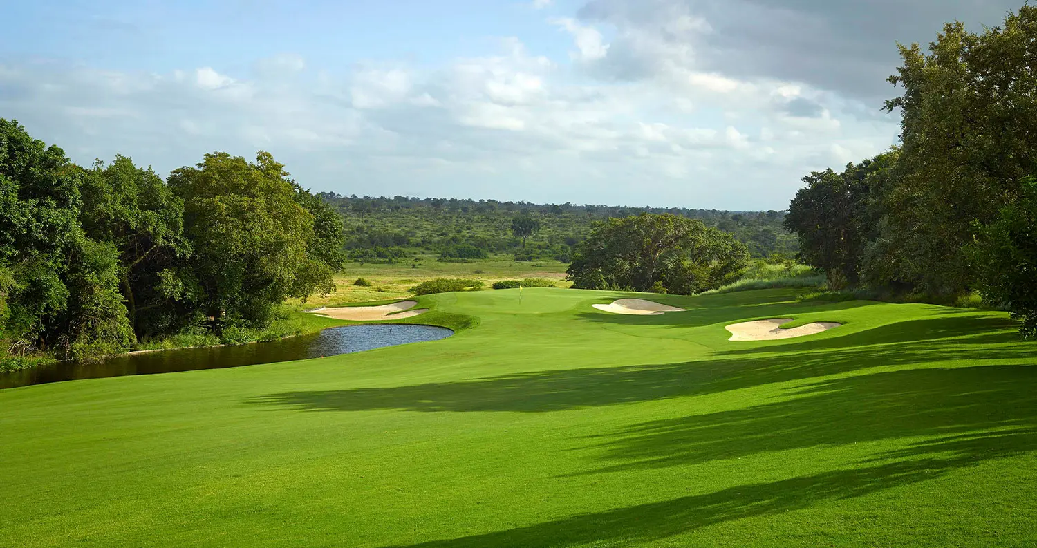 On the border of Kruger National Park in Mpumalanga, this course sits along the Crocodile River with wildlife views including hippos and crocodiles.